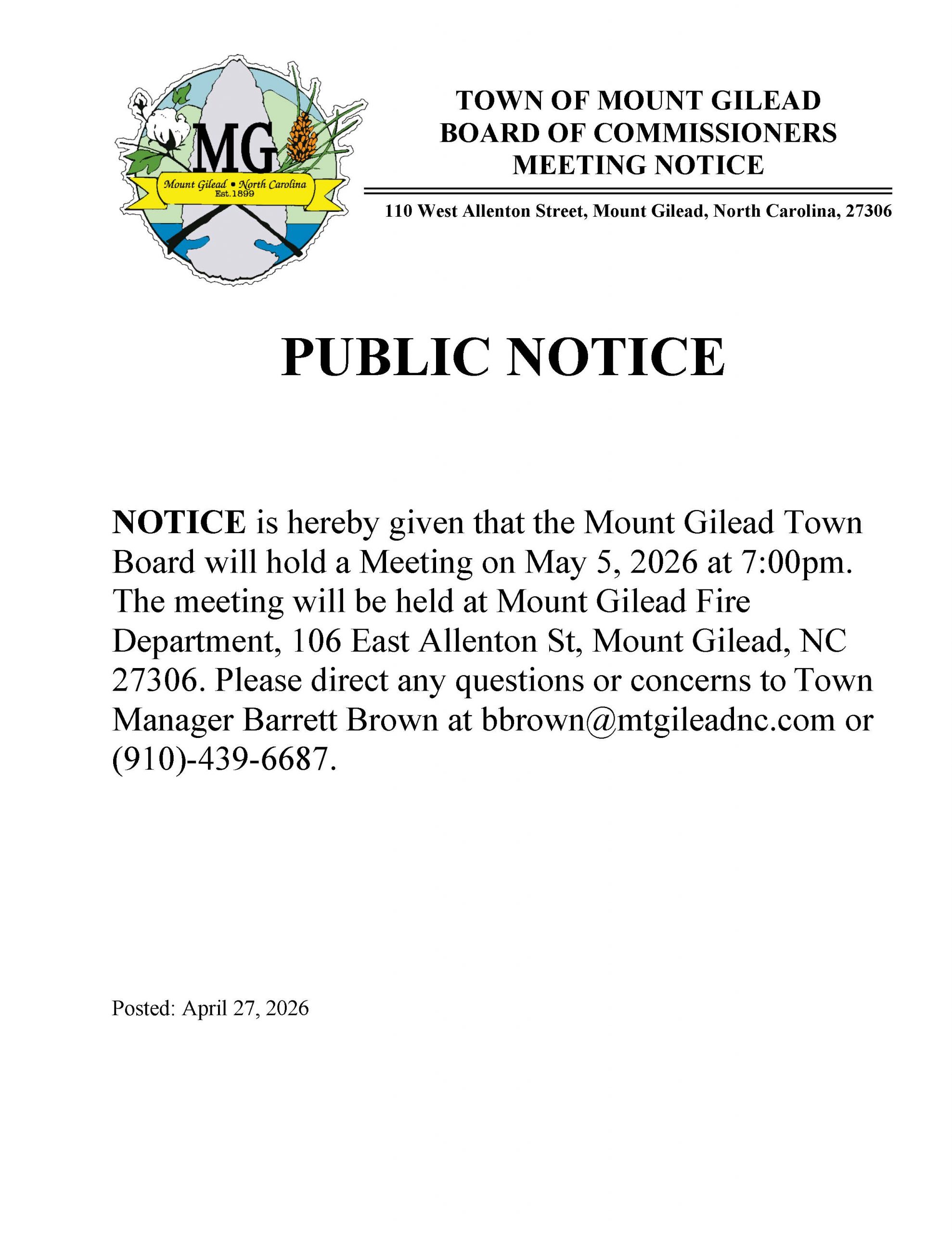 Employment applications available online or apply in person at Mount Gilead Town Hall. Call (910) 210-0951 for more info. Applications accepted until the position is filled. Mount Gilead provides equal employment opportunities to all and prohibits discrimination and harassment of any type without regard to race, color, religion, age, sex, national origin, disability status, genetics, protected veteran status, sexual orientation, gender identity or expression, or any other characteristic protected by federal, state or local laws.